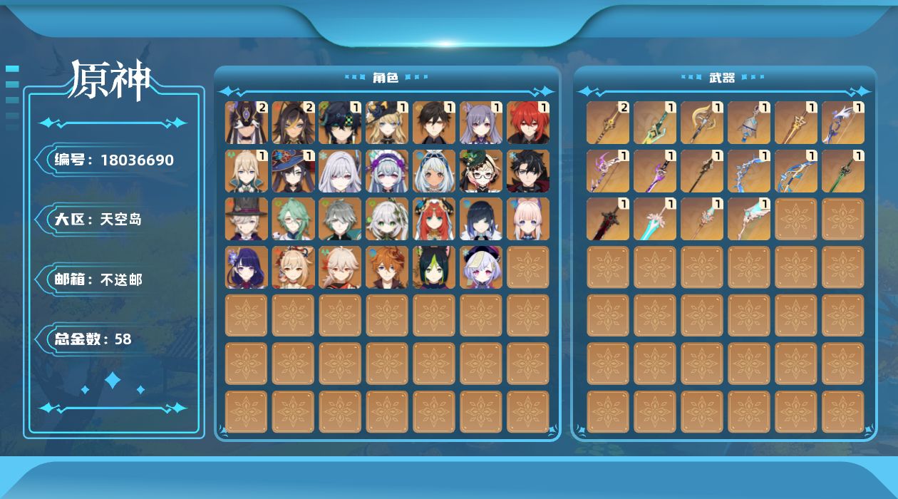 [18036690]59级/58黄/男主/27个五星角色/19个五星武器