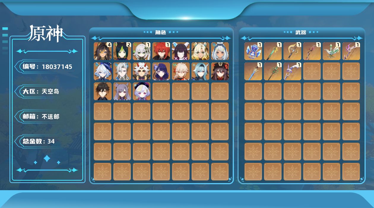 [18037145]【店主推荐捡漏号】59级/34黄/女主/17个五星角色/9个五星武器