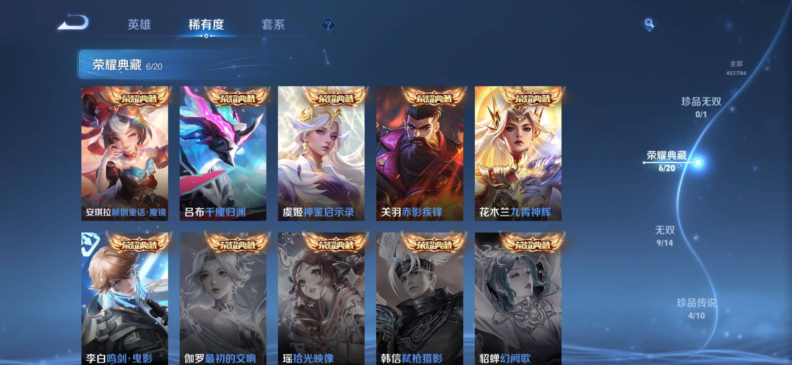 【荣耀典藏】:李白鸣剑曳影,花木兰九霄神辉,关羽赤影疾锋,虞姬神鉴启示录,吕布千魇归渊,安琪拉颠倒童话魔镜