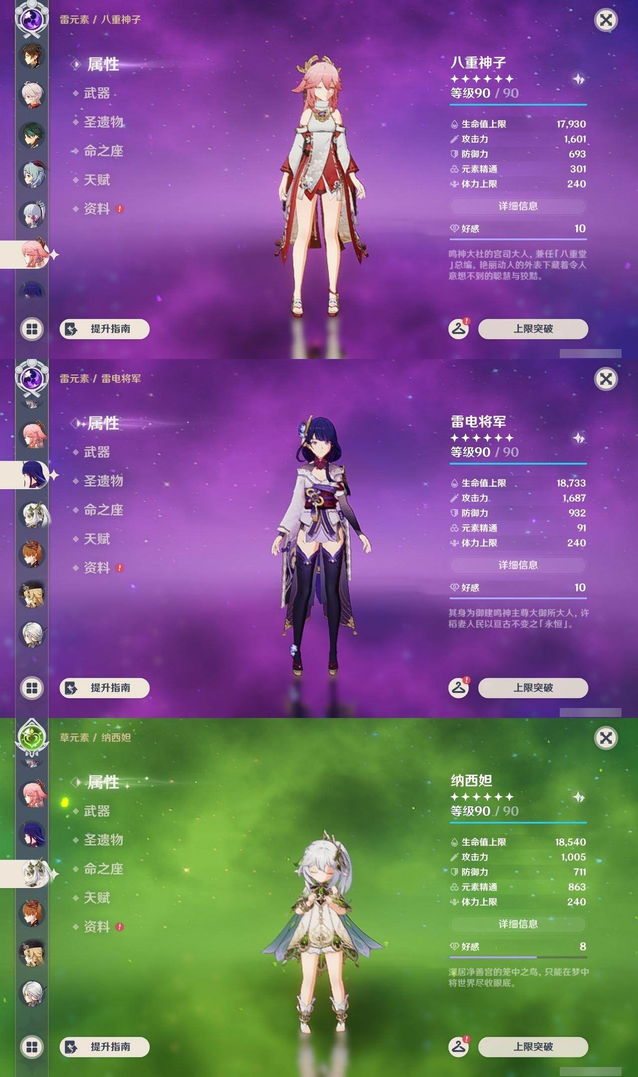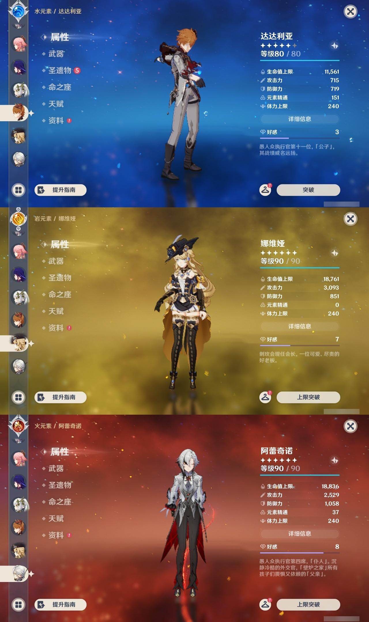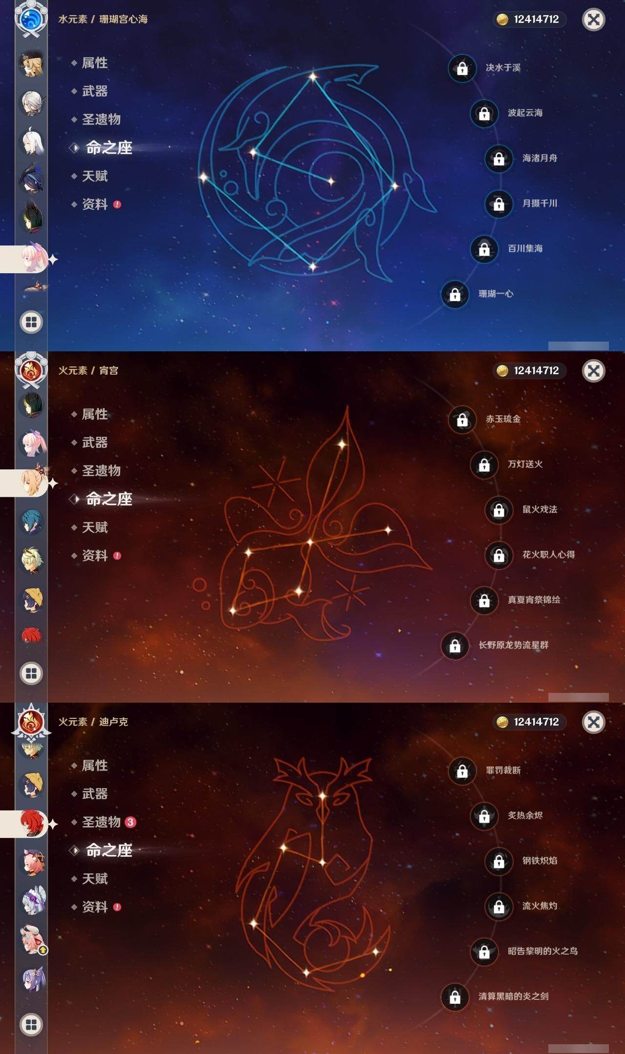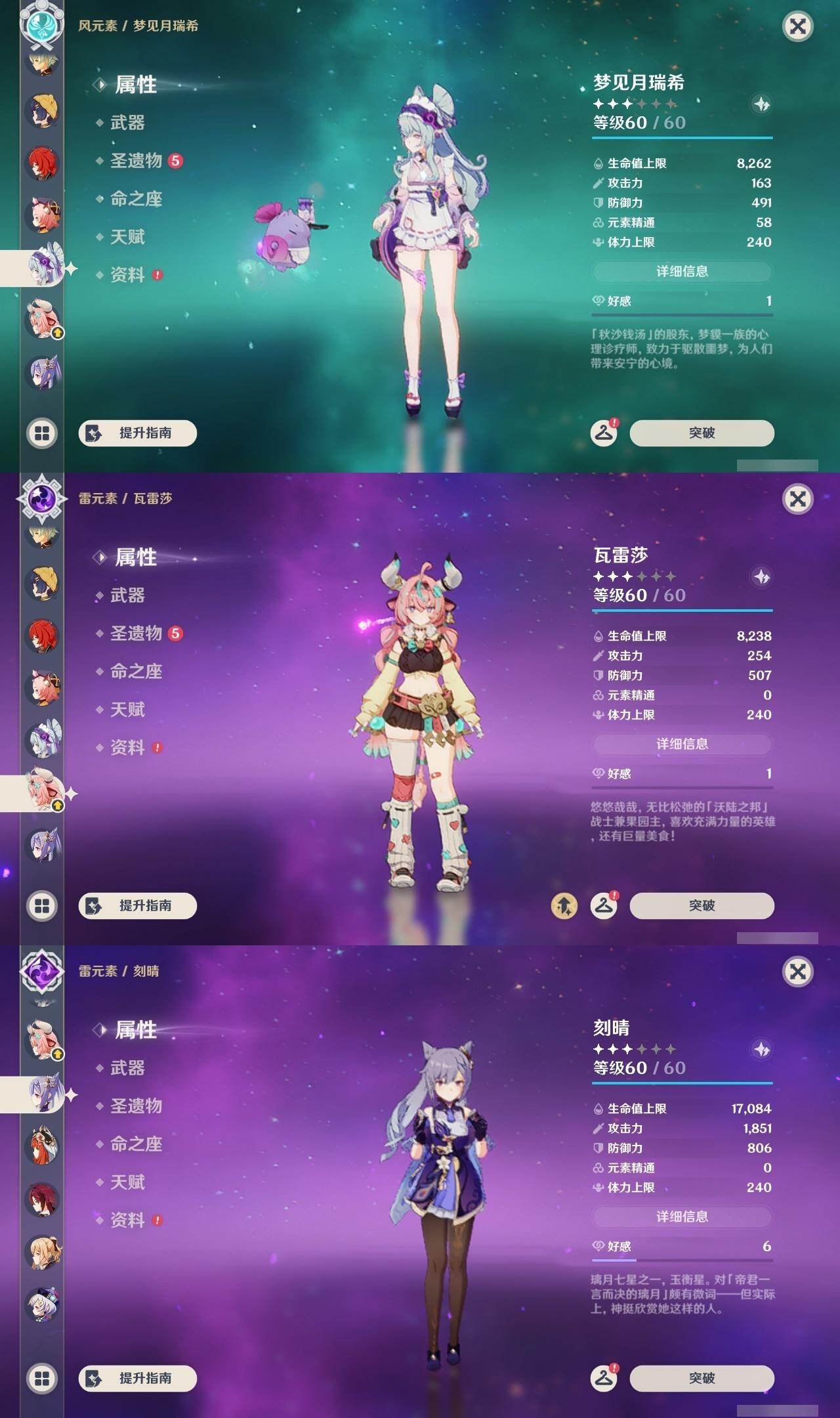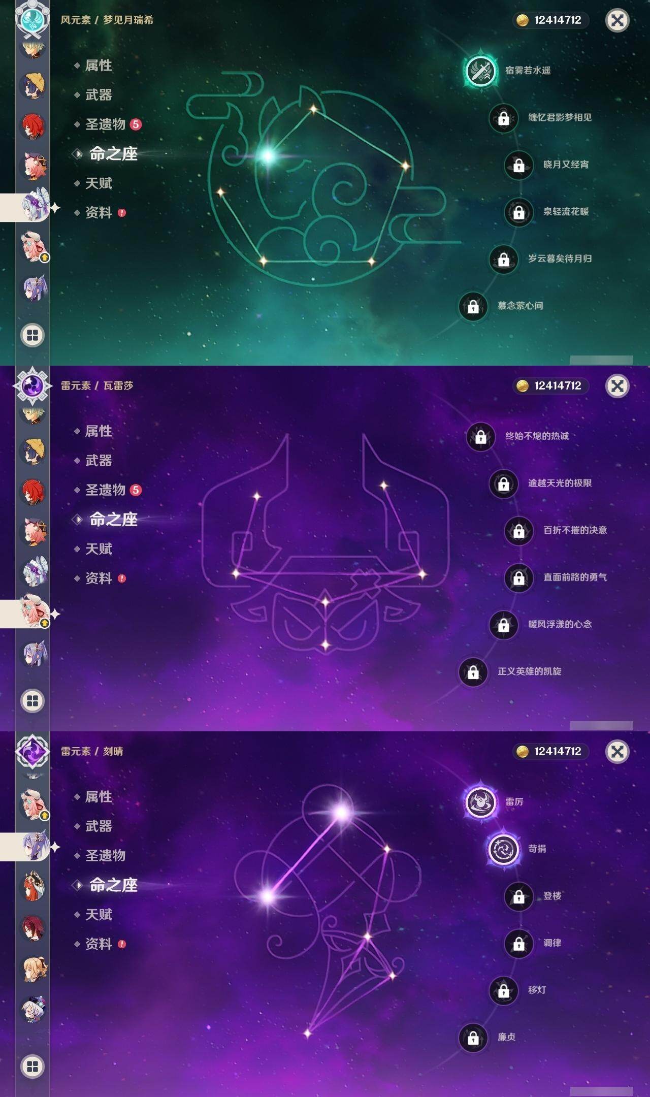 0命克洛琳德,0命阿蕾奇诺,0命娜维娅,1命芙宁娜,0命迪希雅,0命纳西妲,0命妮露,4命提纳里,0命夜兰,0命八重神子,0命申鹤,0命雷电将军,0命枫原万叶,0命神里绫华,0命钟离,0命胡桃,0命甘雨,0命魈,0命宵宫,0命达达利亚,0命珊瑚宫心海,2命刻晴,1命七七,4命琴,1命莫娜,0命迪卢克,0命茜特菈莉,1命梦见月瑞希,0命瓦雷莎,精1静水流涌之辉,精1雾切之回光,精1苍古自由之誓,精1护摩之杖,精1和璞鸢,精1天空之脊,精2狼的末路