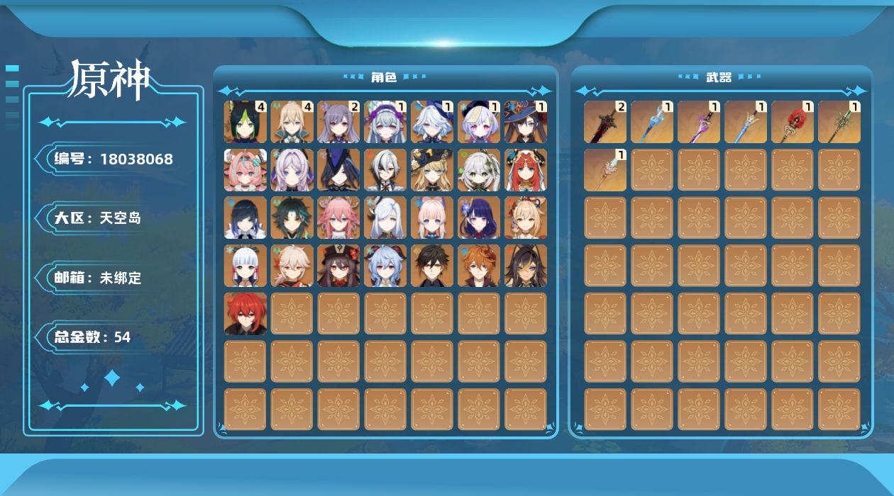 [18038068]60级/54黄/女主/29个五星角色/10个五星武器