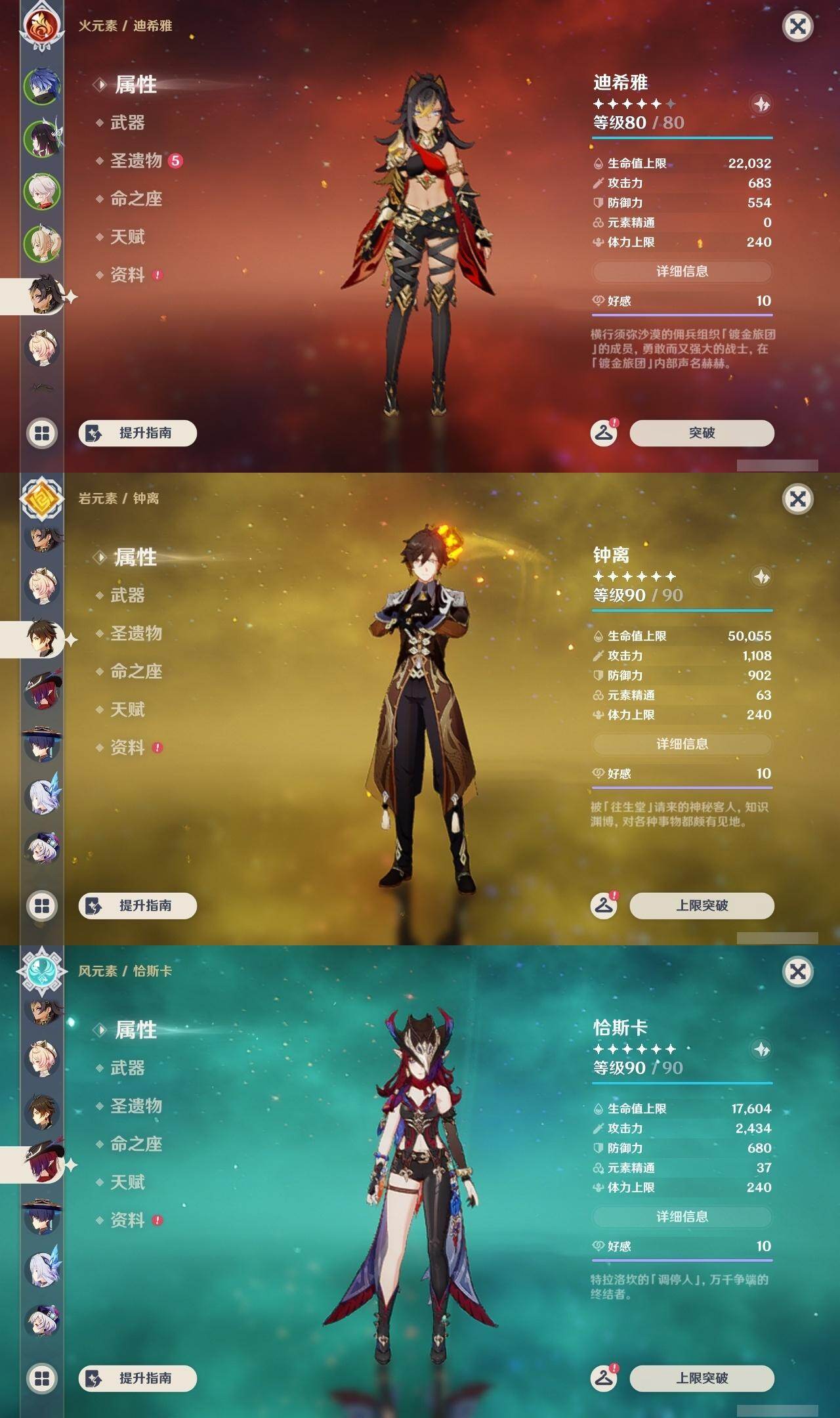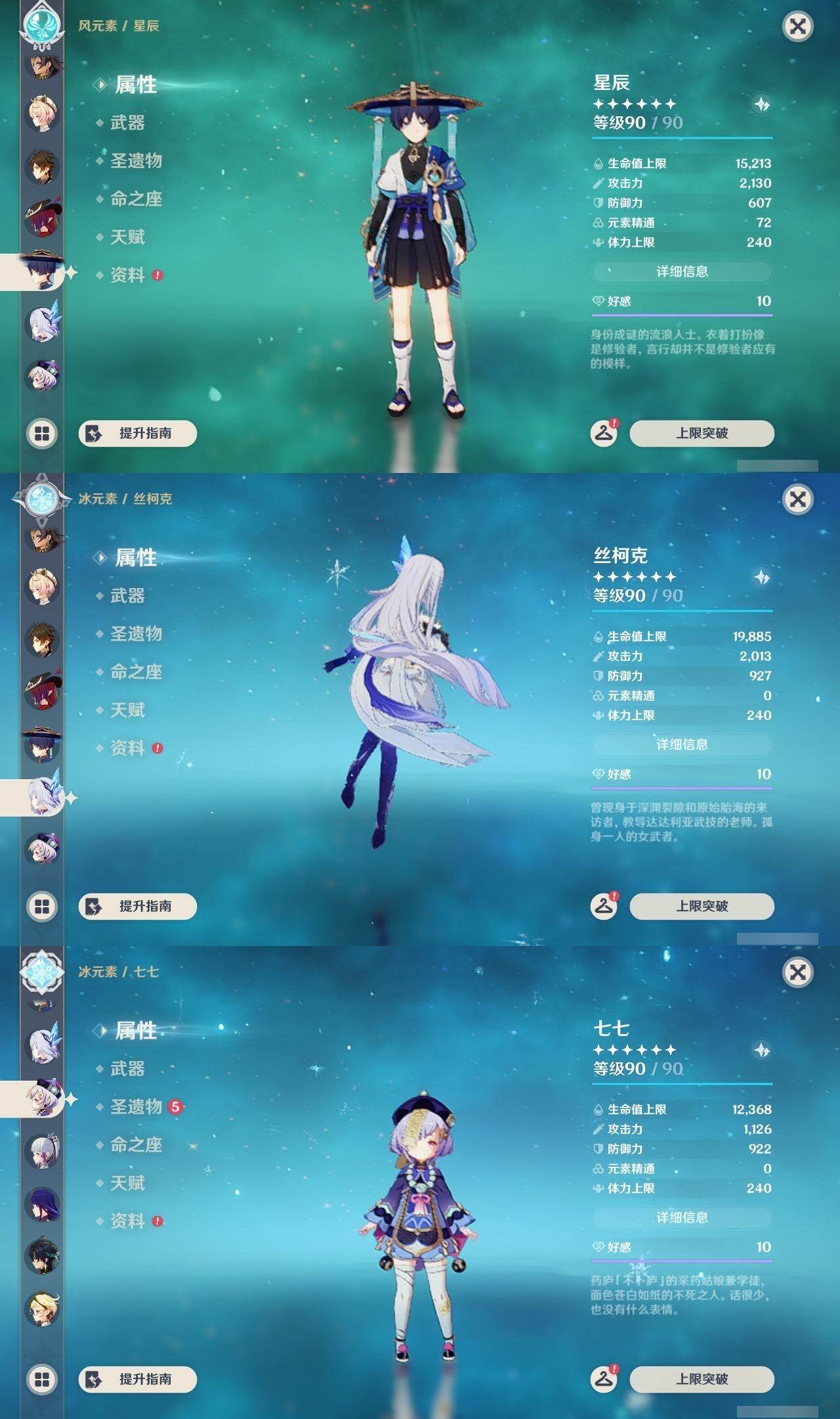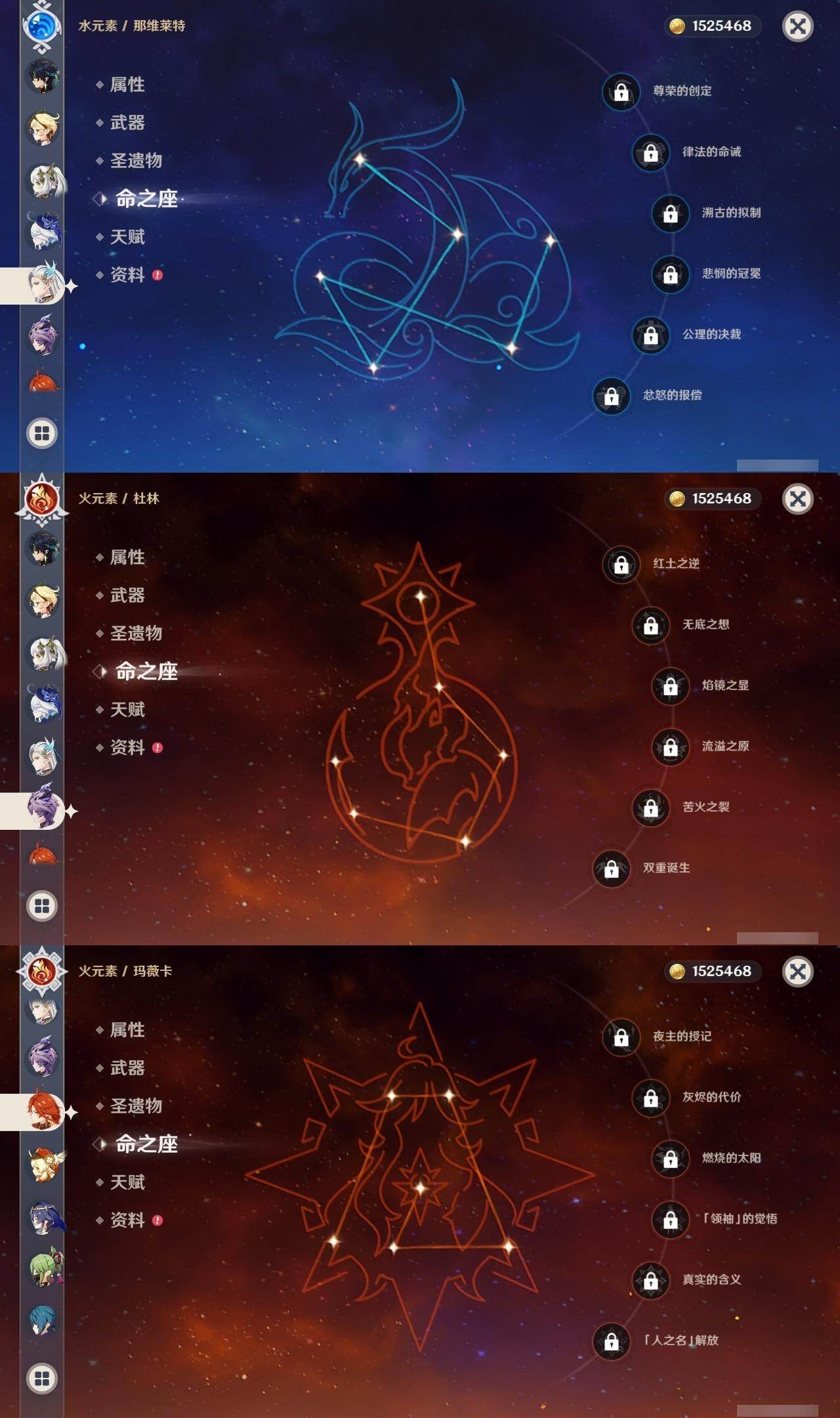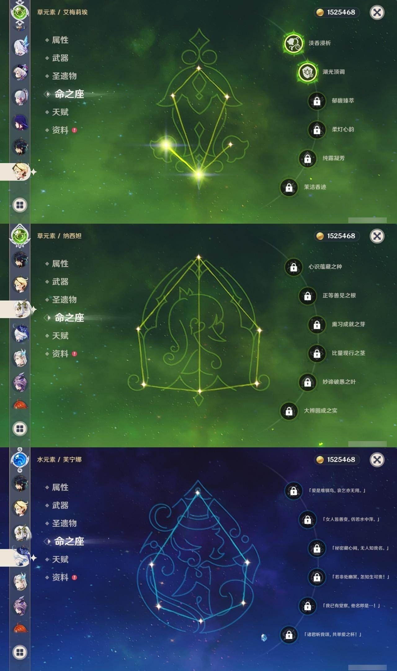 0命芙宁娜,0命那维莱特,1命迪希雅,2命流浪者,0命纳西妲,1命提纳里,0命神里绫人,0命雷电将军,0命枫原万叶,0命神里绫华,0命钟离,0命可莉,2命刻晴,2命七七,3命琴,2命莫娜,0命迪卢克,0命基尼奇,2命艾梅莉埃,0命恰斯卡,0命玛薇卡,2命丝柯克,0命菈乌玛,0命菲林斯,0命杜林,0命哥伦比娅,精1万世流涌大典,精1千夜浮梦,精1四风原典,精1和璞鸢,精1天空之脊,精1星鹫赤羽
