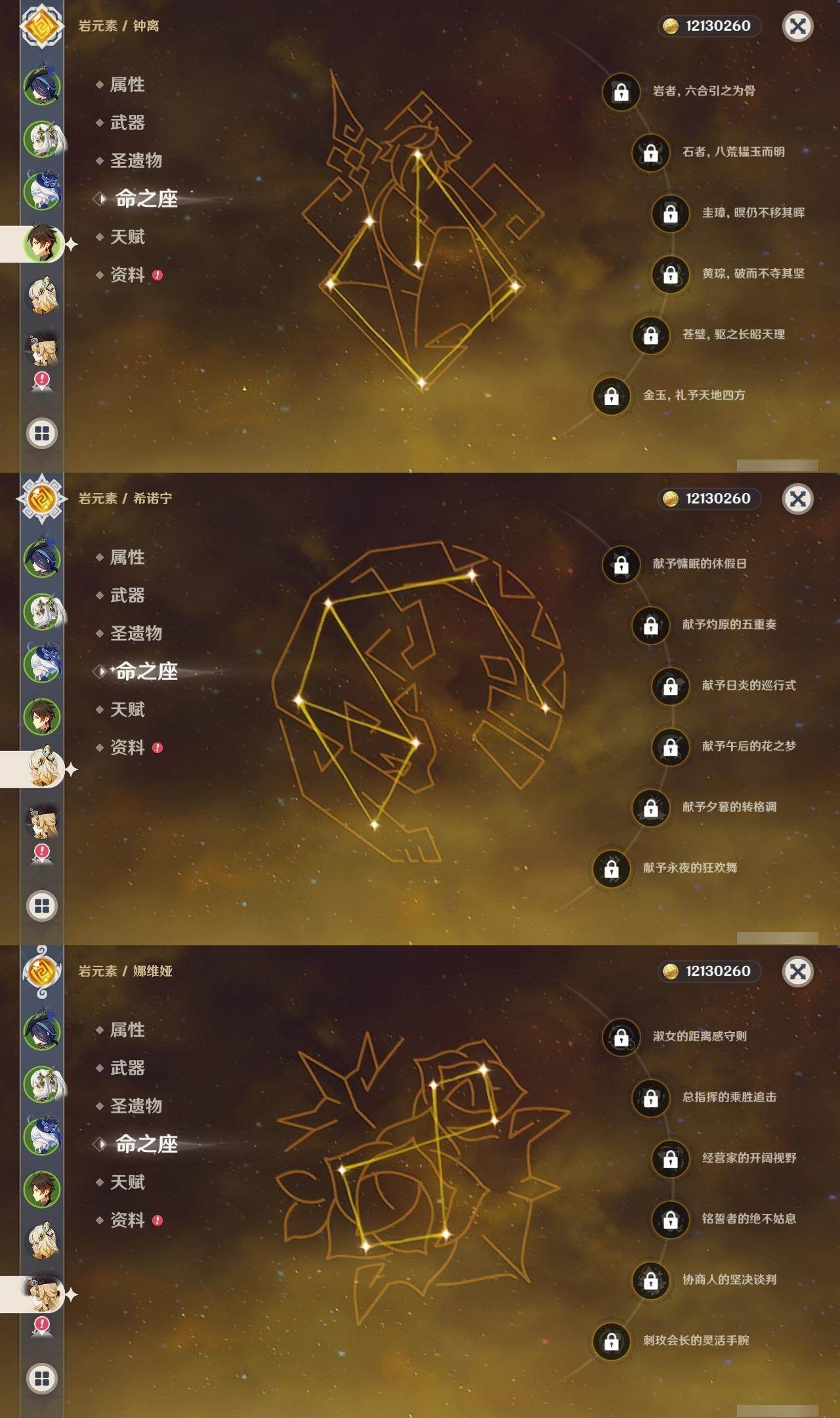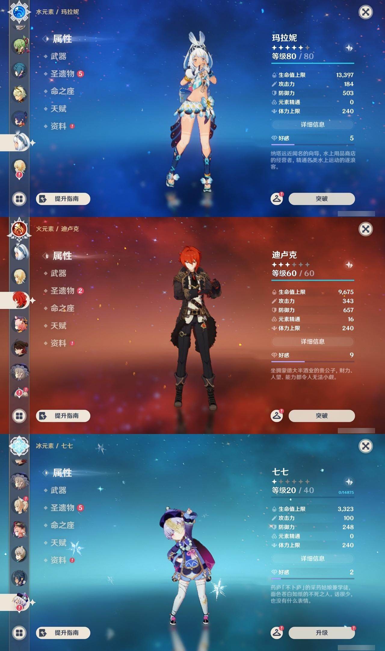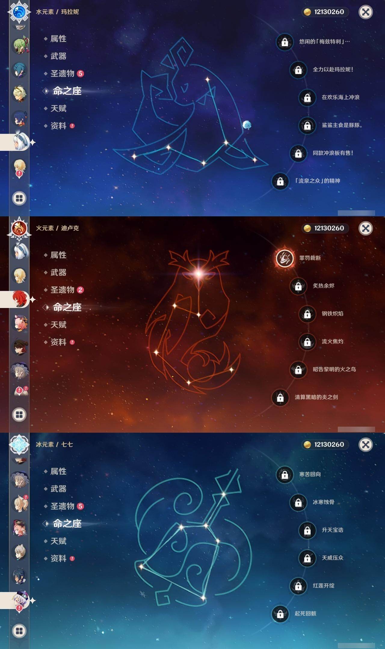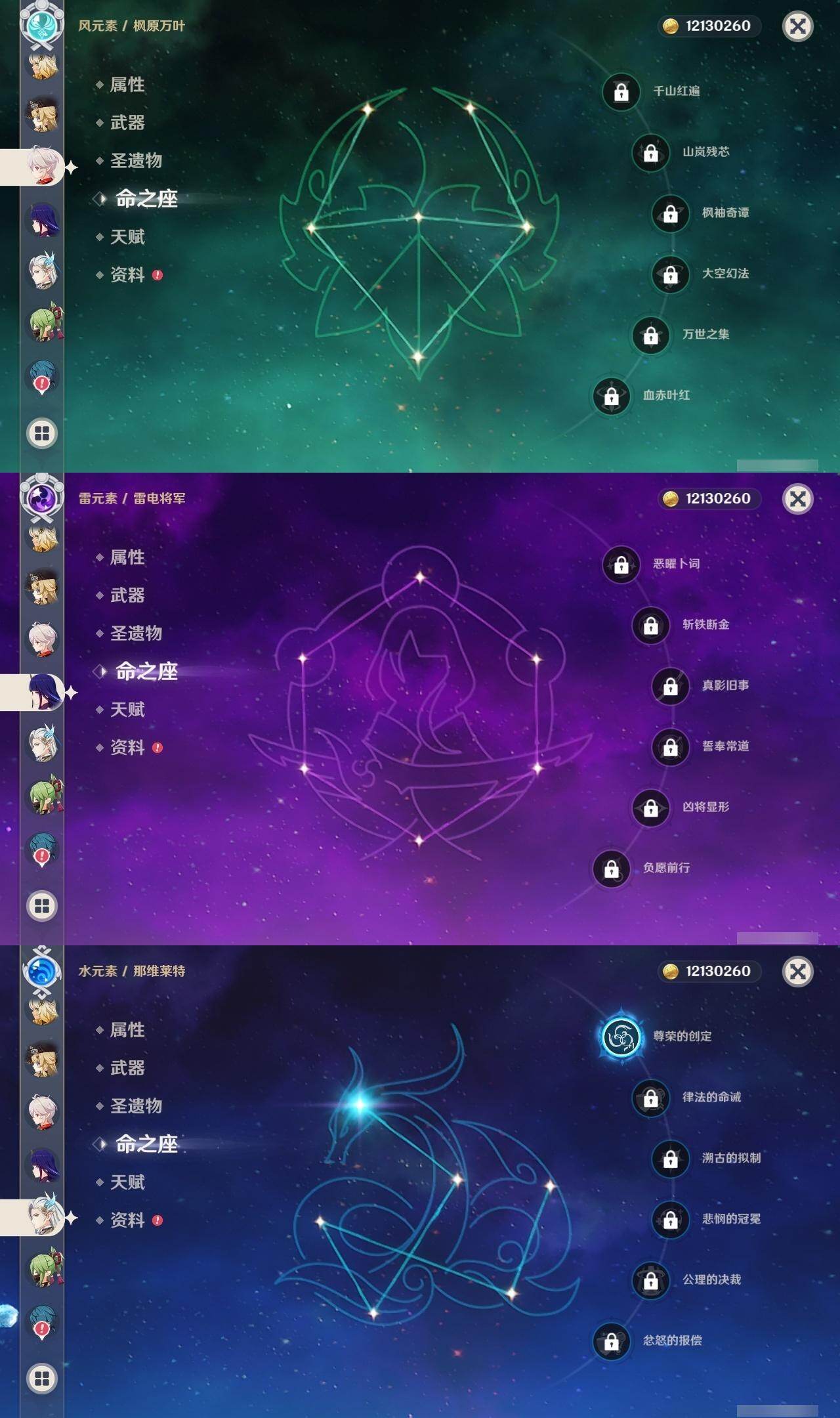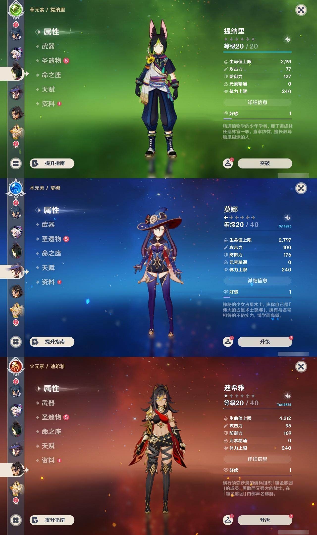 0命克洛琳德,0命娜维娅,0命芙宁娜,1命那维莱特,2命迪希雅,1命纳西妲,0命提纳里,0命雷电将军,0命枫原万叶,0命钟离,0命七七,0命莫娜,1命迪卢克,0命希诺宁,0命玛拉妮,精1和璞鸢,精1天空之傲