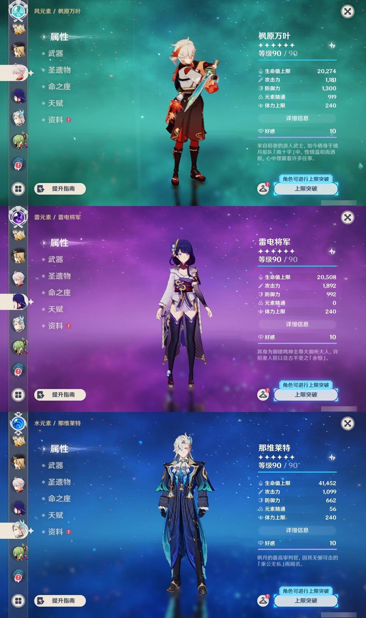 钟离,枫原万叶,雷电将军,迪卢克,七七,莫娜
