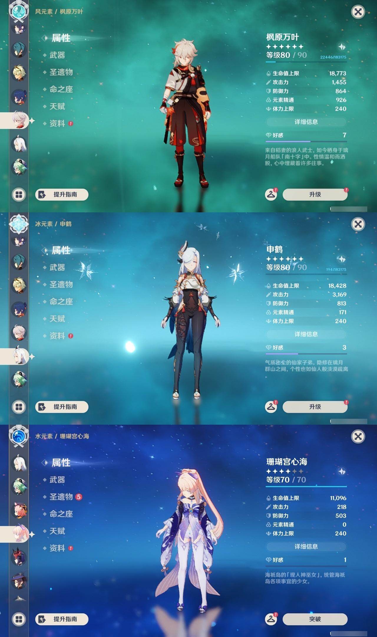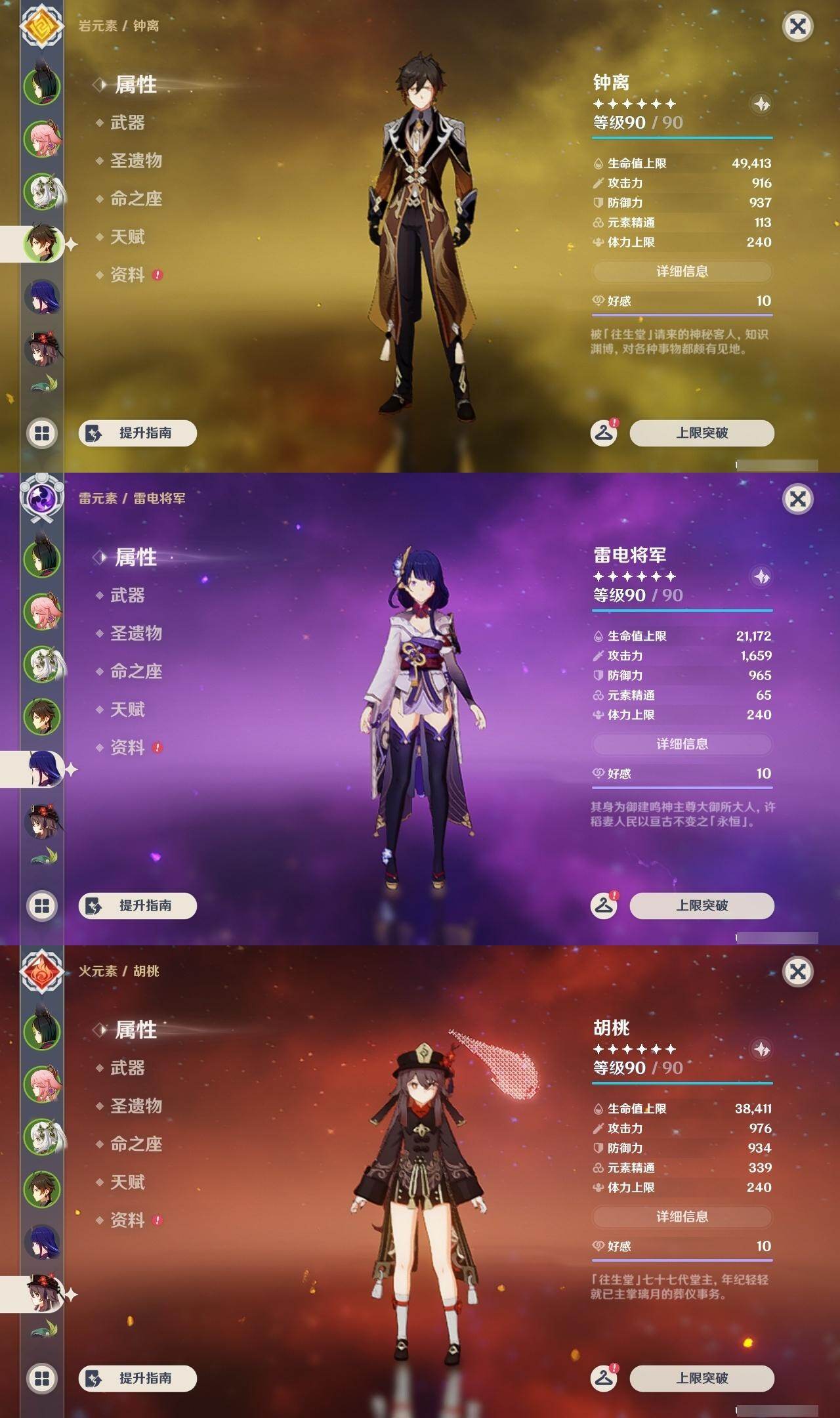 八重神子,钟离,雷电将军,胡桃,温迪,甘雨,枫原万叶,申鹤,珊瑚宫心海,莫娜,琴,七七,迪卢克,刻晴