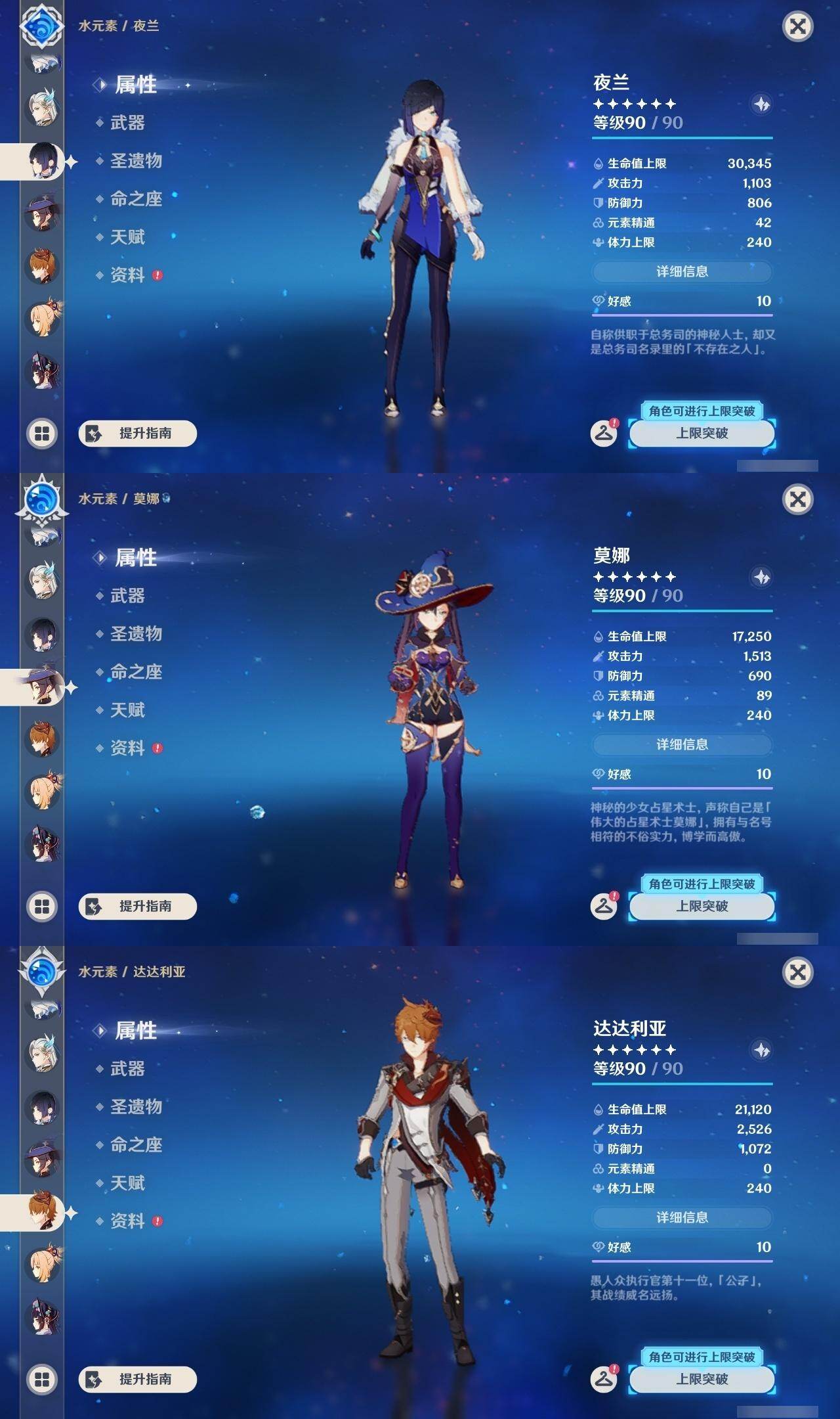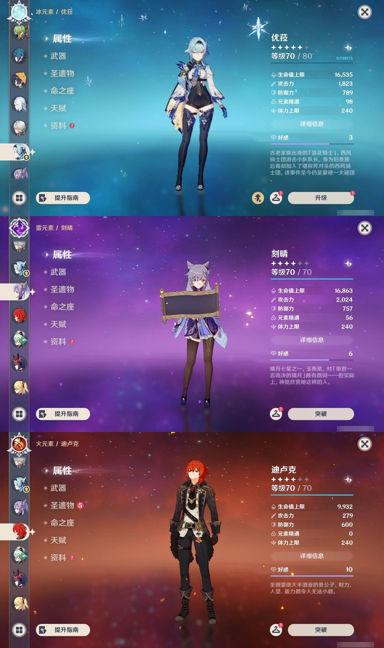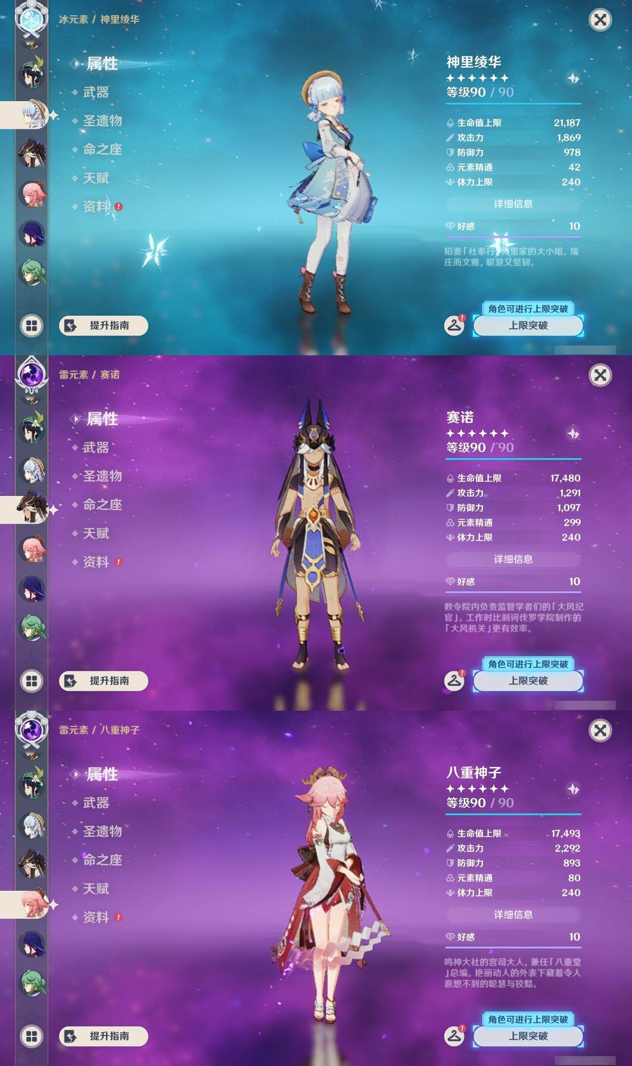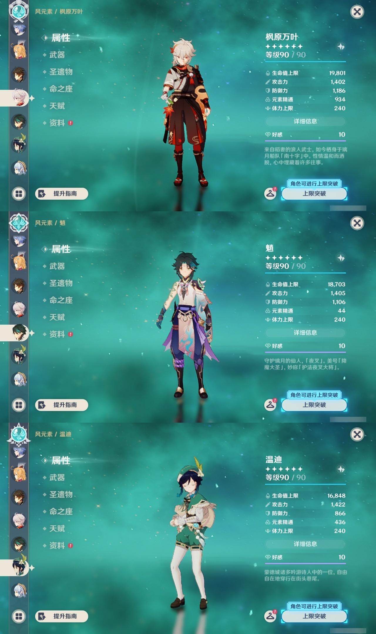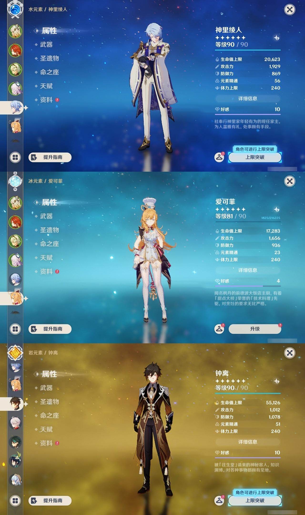 钟离,枫原万叶,魈,温迪,神里凌华,八重神子,雷电将军,莫娜,达达利亚,宵宫,申鹤,优菈,刻晴,迪卢克,七七,荒泷一斗,琴