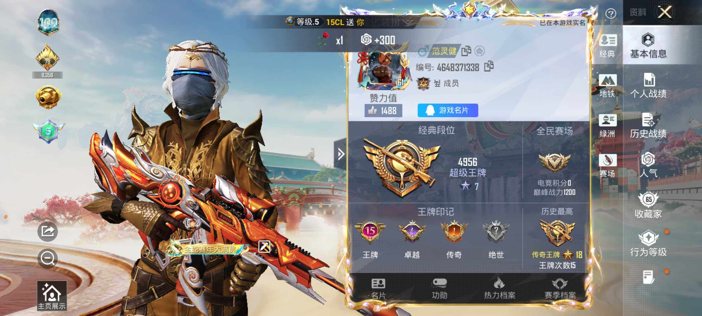 - [17022021]河南一区-53V-8王者-0炫金 【传说武器】:传说圣谕 【热门武器】:传说圣谕,M200-幻神,M4A1-黑骑士,沙鹰-修罗,炽芒蝶刃,炽芒蝶刃-破浪逐光 皮肤 【音效卡】:M4A1-黑骑士音效卡,Barrett-碧霄极光音效卡,炼狱-百战金芒-庆典舞曲音效卡,死神-雪域霜狐-怀旧音效卡 【皮肤】:幻神-电竞之星 皮肤,Kar98K-星神-AG-CFPLS21冠军皮肤,雷神-暗月,M4A1-再燃火线,火麒麟-雷神,毁灭-暗月,毁灭-SV-CFPLS16冠军,毁灭-英雄计划 皮肤,黑骑士-暗月,黑骑士-战神马超,黑骑士-破界 皮肤,修罗-星空,轻型军用手斧-再燃火线,炽芒蝶刃-破浪逐光 皮肤 【角色】:隼,审判者,战地猎狐,王者炫,雪域霜狐,奇洋探员,乔伊教练,暗夜-X,初恋灵狐,电竞少女,芳心审判者,飞虎队-X,风暴女,嘉年华灵狐,娟娟,兰-海滩派对,猎狐者-追月,0号玩家,零-水下丽影,灵狐者-X,龙儿,龙儿-小淘气,麻雀,曼陀罗-X,潘多拉-X,潘多拉-甜心教官,青霞仙子,蛇姬,兔囡囡,新娜塔莎,樱-战斗天使,影武者-X,游珑儿 【人偶武器】:星神-炽天使,巴雷特-零-水下丽影,加特林-机械猎手,AWM-灵狐-15周年嘉年华,迷你牛牛*2,迷你生化手雷,生化手雷-机甲核心*3,深渊终结者手雷,Barrett-夜玫瑰,迷你艾比,迷你巨石泰坦-魔花研究所,灵狐娃娃手雷*3 【暴走生化】:双面神 【挑战大师】:冰龙粉碎者-白马银枪*2,神圣爆裂者-末日III 【英雄级武器】:M4A1-雷神,M4A1-黑骑士,M4A1-幻灵,无影-神兵利器,黑武士-锦绣游龙,超新星-热带奇洋,死神-雪域霜狐,烈火-动感闪耀,黑骑士-海王,Barrett-毁灭,M200-幻神,炼狱-百战金芒,沙鹰-修罗,天神-动感闪耀,幻灵之锋*2,擎天-竞技荣光,炽芒蝶刃,屠龙-动感闪耀,龙啸-热带奇洋,斩神刀-雷暴,麒麟刺-百战金芒,雷霆王者之锋-觉醒版,高爆手雷-雷暴,高爆手雷-幻灵,高爆手雷-竞技荣光*3,手雷-动感闪耀,手雷-热带奇洋,高爆手雷-玄豹*2,闪光弹-雷暴,闪光弹-竞技荣光*3,闪光弹-云龙,闪光弹-玄豹*2,烟雾弹-雷暴,烟雾弹-竞技荣光*3,烟雾弹-玄豹*2,烟雾弹-雷霆王者-觉醒版*2,M4A1-赤狱骑士,M4A1-苍鸣雷神,Barrett-碧霄极光 【道具】:CFS限定