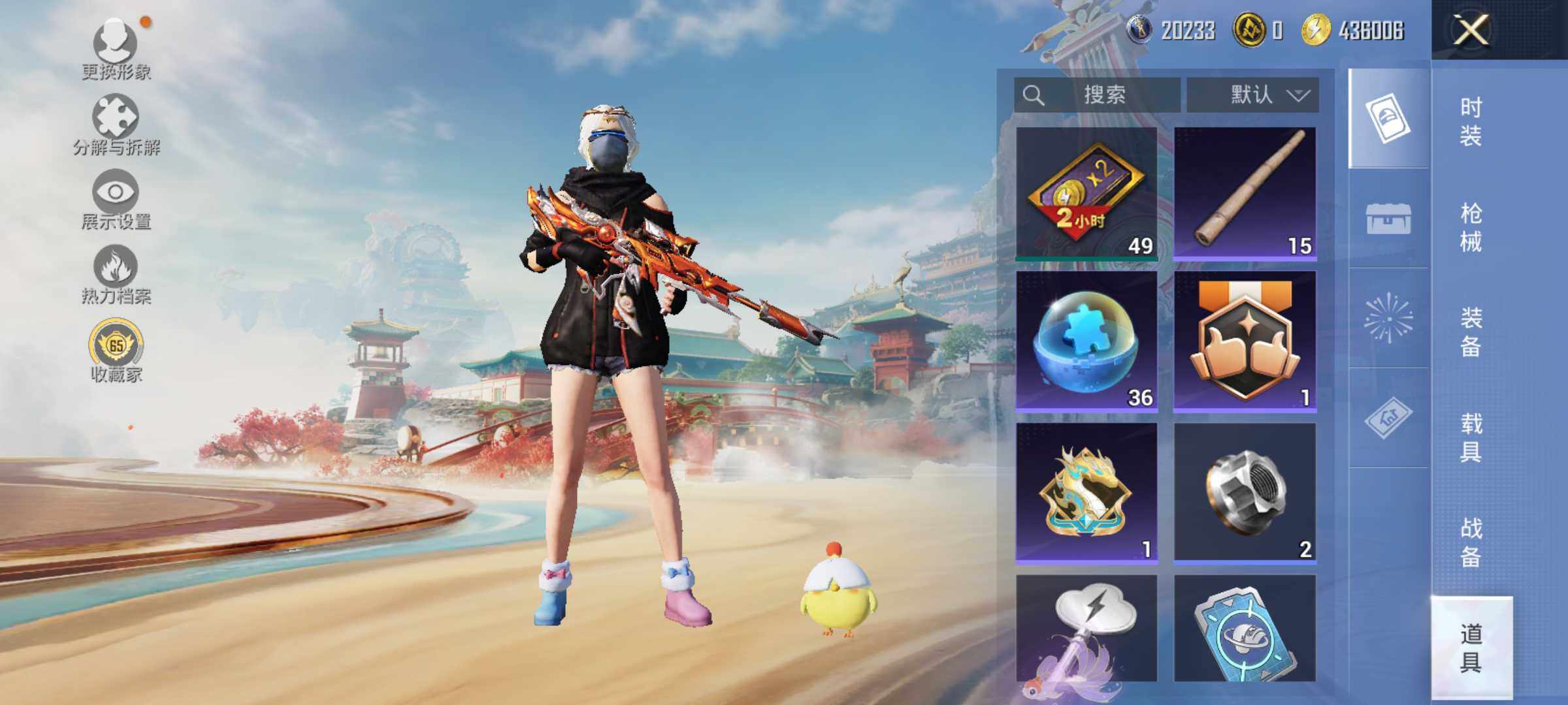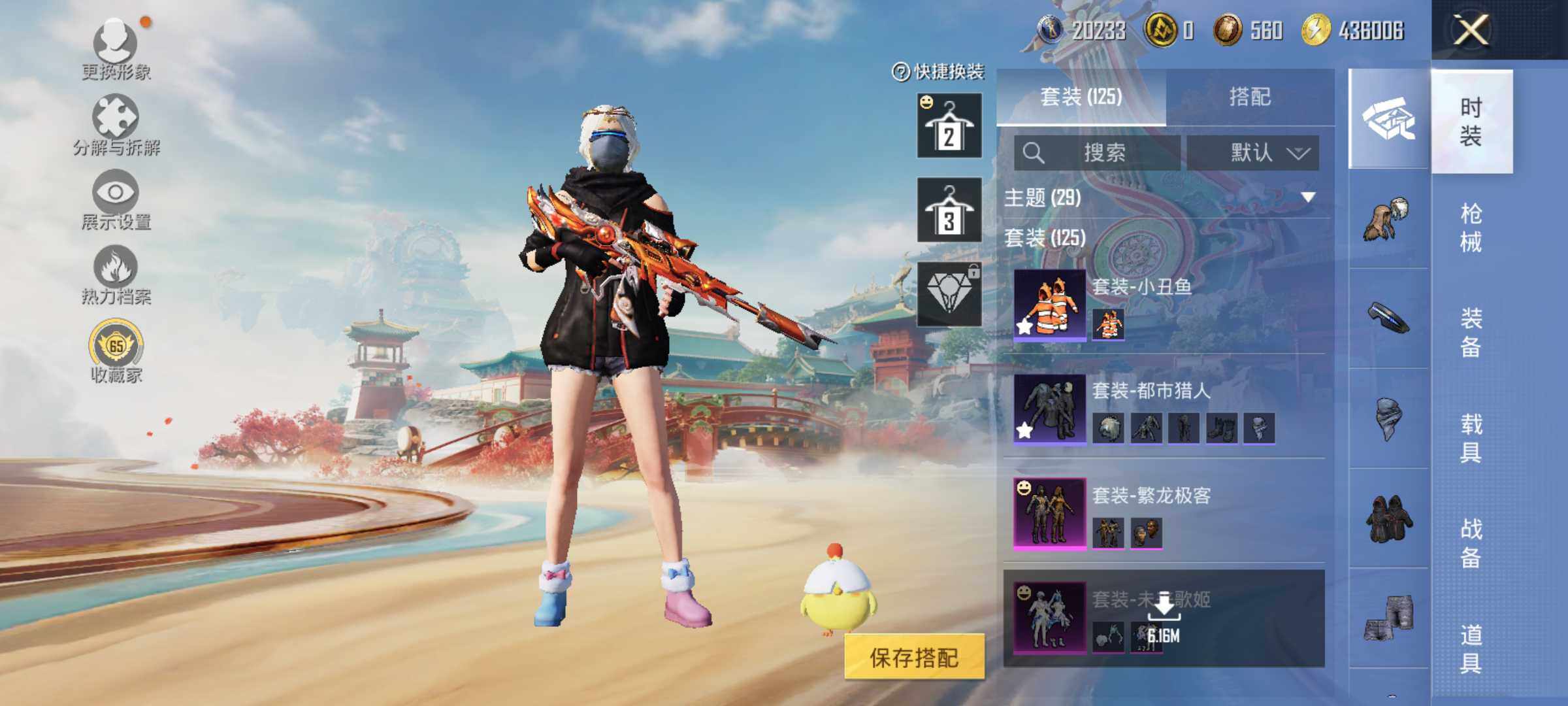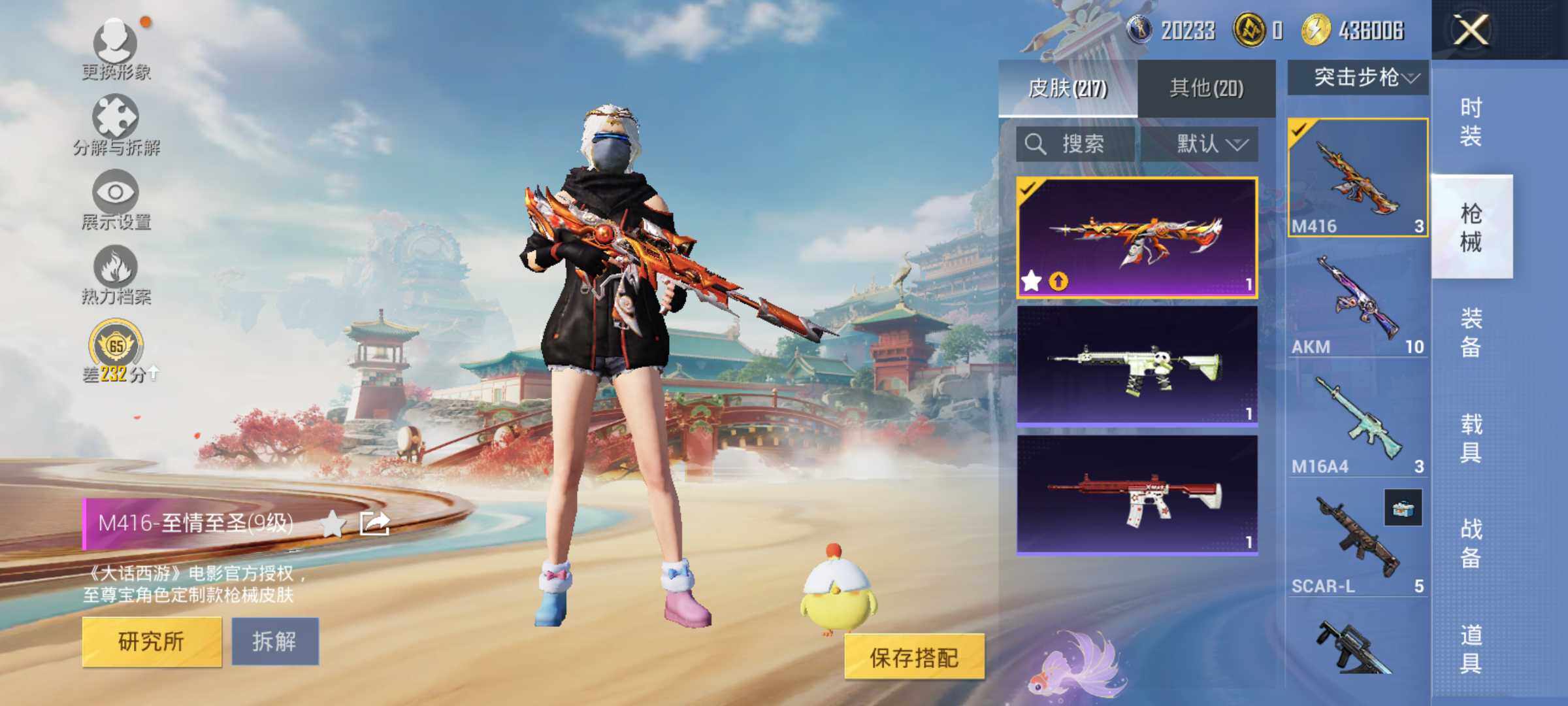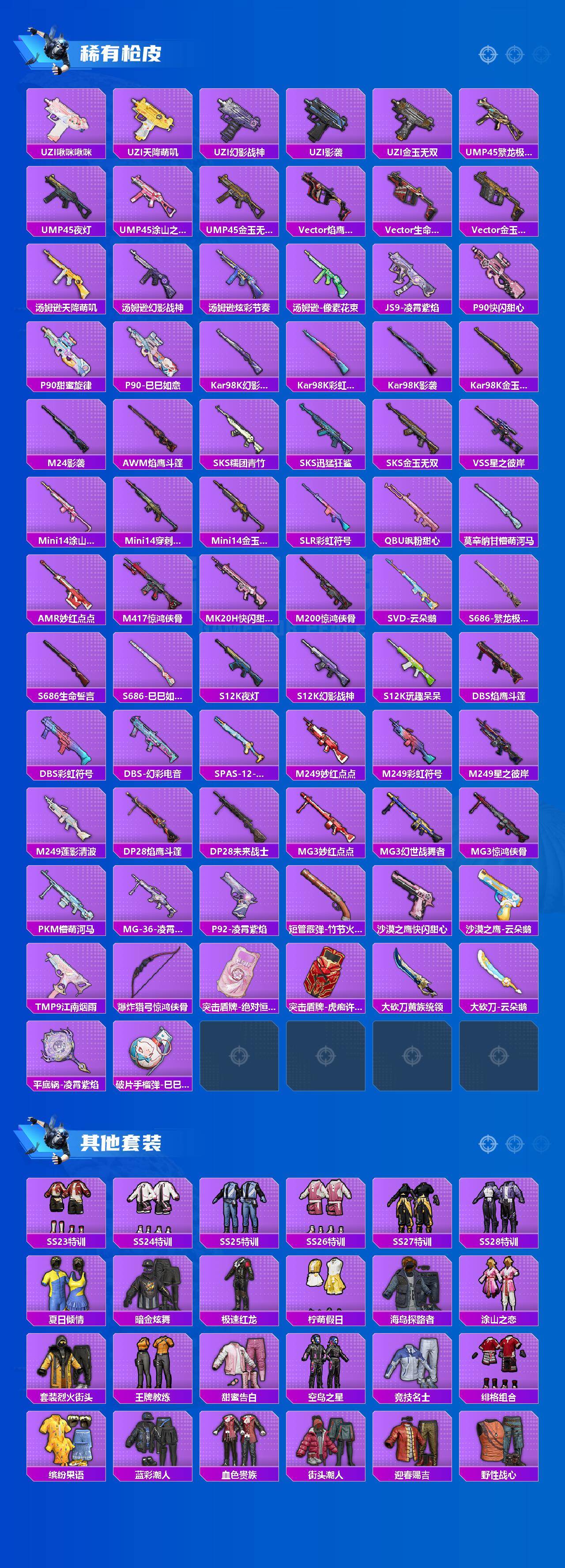 AKM-星际浪客,M416-至情至圣,AUG-暖羊咩咩,UMP45-量子极限,Kar98K-巳巳如意