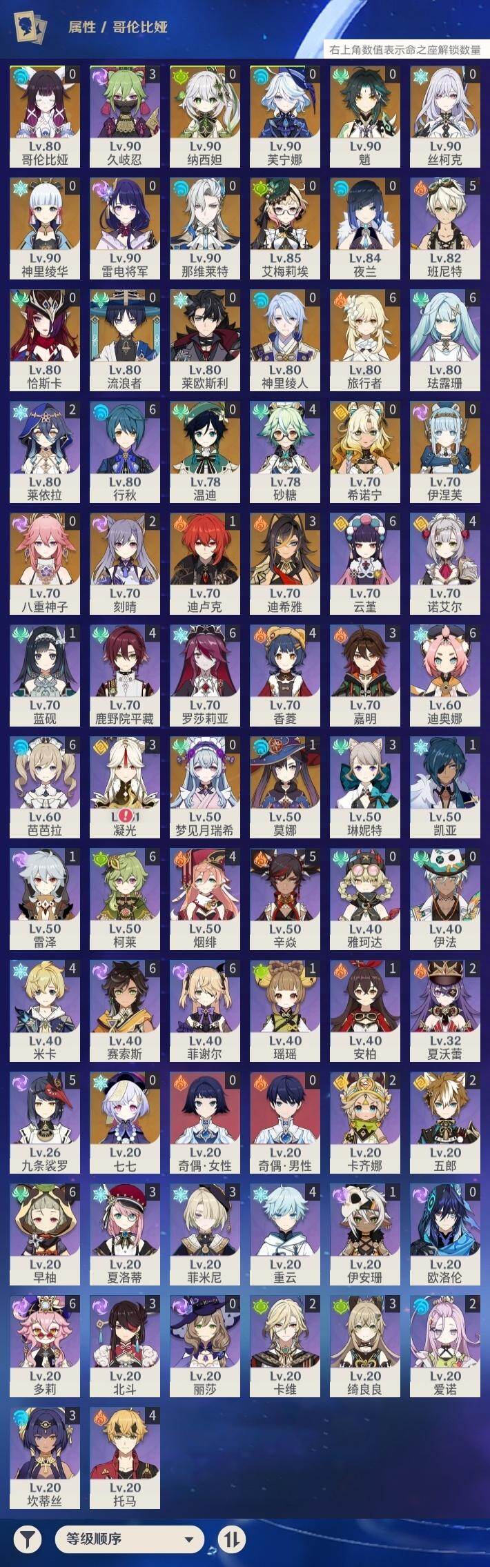 [18043424]59级/39黄/女主/24个五星角色/8个五星武器