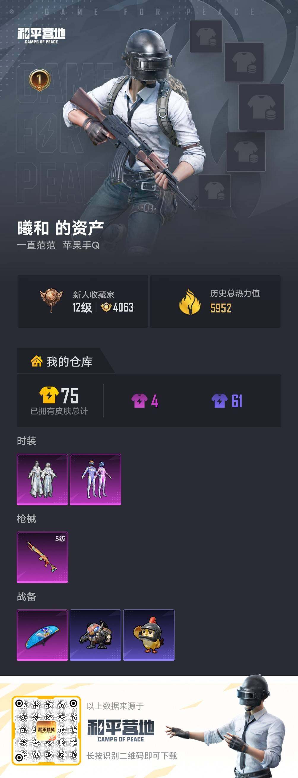 - [16667577]【特价出售/店主推荐】313m总资产-114038k哈伏币-60烽火等级-钻石-19战场等级-列兵 【干员外观】:骇爪-维什戴尔,露娜-金牌射手 【近战皮肤】:近战-黑鹰 【传说外观】:SG552突击步枪-运动员,SCAR-H战斗步枪-启航,CAR-15突击步枪-阿米娅,AS Val突击步枪-蛇年祥瑞,SMG-45冲锋枪-骑士,SKS射手步枪-骑士,SR-25射手步枪-水墨云图,R93狙击步枪-维什戴尔 【史诗外观】:AKM突击步枪-林中猎手,K416突击步枪-冬日风情,AUG突击步枪-蝮蛇,M7战斗步枪-百步穿杨,G3战斗步枪-流沙送葬,AS Val突击步枪-百步穿杨,MP5冲锋枪-深海恐惧,MP5冲锋枪-战术竞备,MP5冲锋枪-竞技风,Vector冲锋枪-猎鳄行动,Vector冲锋枪-百步穿杨,SR-3M紧凑突击步枪-英雄,SR-3M紧凑突击步枪-战术竞备,M1014霰弹枪-林中猎手,PKM通用机枪-蝮蛇,SVD狙击步枪-阿萨拉工艺,M14射手步枪-工业狂潮,M700狙击步枪-竞技风,M700狙击步枪-蝮蛇,M700狙击步枪-百步穿杨,M700狙击步枪-哈夫克警备,AWM狙击步枪-流沙送葬,QSZ92G-风林火山,沙漠之鹰-曙光 【稀有外观】:野牛冲锋枪-黑潮,M4A1突击步枪-零点,M4A1突击步枪-繁盛,AKM突击步枪-肃杀,QBZ95-1突击步枪-公平竞技,ASh-12战斗步枪-繁盛,K416突击步枪-碳纤维,AUG突击步枪-前沿科技,M7战斗步枪-捣蛋鬼,SG552突击步枪-2026,AK-12突击步枪-零点,SCAR-H战斗步枪-童趣,SCAR-H战斗步枪-荣耀列队,G3战斗步枪-主宰,腾龙突击步枪-冰天雪地,K437突击步枪-生存指令,MK47突击步枪-精英联盟,MP5冲锋枪-弄臣,MP5冲锋枪-巡逻队,Vector冲锋枪-先锋,Vector冲锋枪-街头涂鸦,UZI冲锋枪-前沿科技,UZI冲锋枪-亚特兰蒂斯,SMG-45-行动开启,SMG-45冲锋枪-幻影结构,SR-3M紧凑突击步枪-英雄,勇士冲锋枪-主宰,勇士冲锋枪-冰天雪地,MP7冲锋枪-幻影结构,M1014霰弹枪-幻影结构,M249轻机枪-毛鲁斯之力,M249轻机枪-冰天雪地,QJB201轻机枪-哈夫克卫队,Mini-14射手步枪-荣耀列队,VSS射手步枪-童趣,SVD狙击步枪-战术行动,S