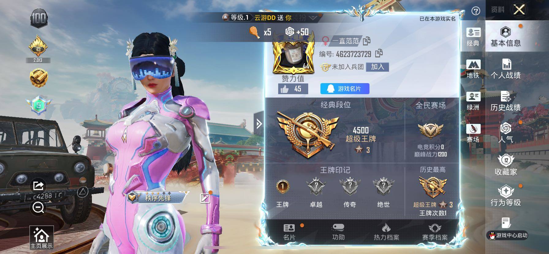 - [11254521]可二次 可修改实名 实名:可修改 烽火地带段位:白银 全面战场段位:无段位 总资产:54.7 哈夫币:2.173 干员外观:露娜-黑·天际线