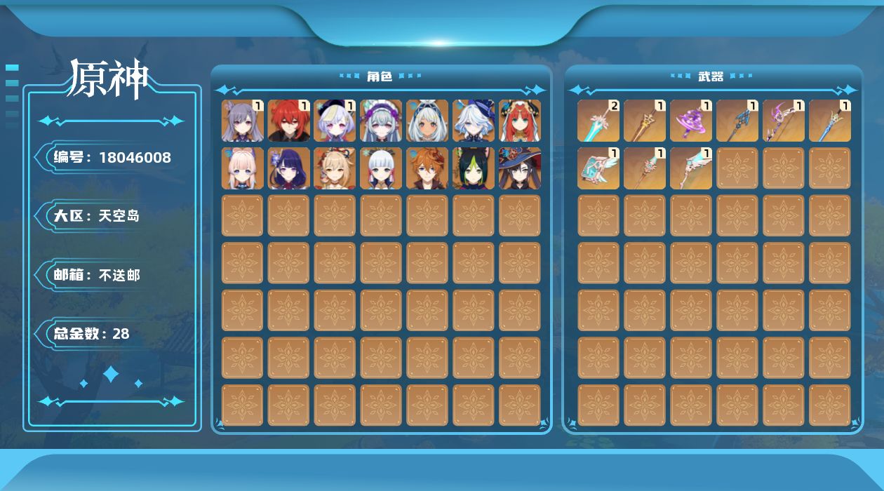 [18046008]57级/28黄/女主/14个五星角色/10个五星武器