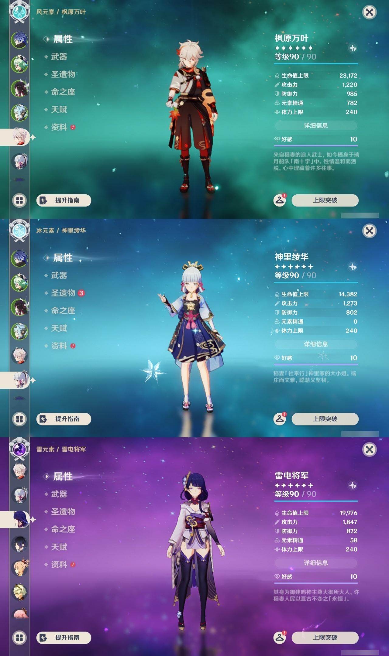 枫原万叶,神里凌华,雷电将军,宵宫,八重神子,优菈,刻晴,迪卢克,七七,莫娜