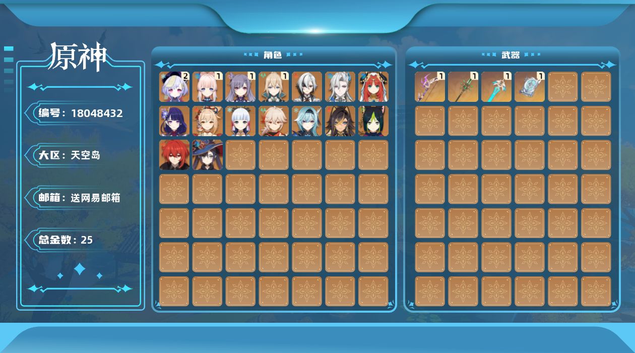 [18048432]58级/25黄/女主/16个五星角色/4个五星武器