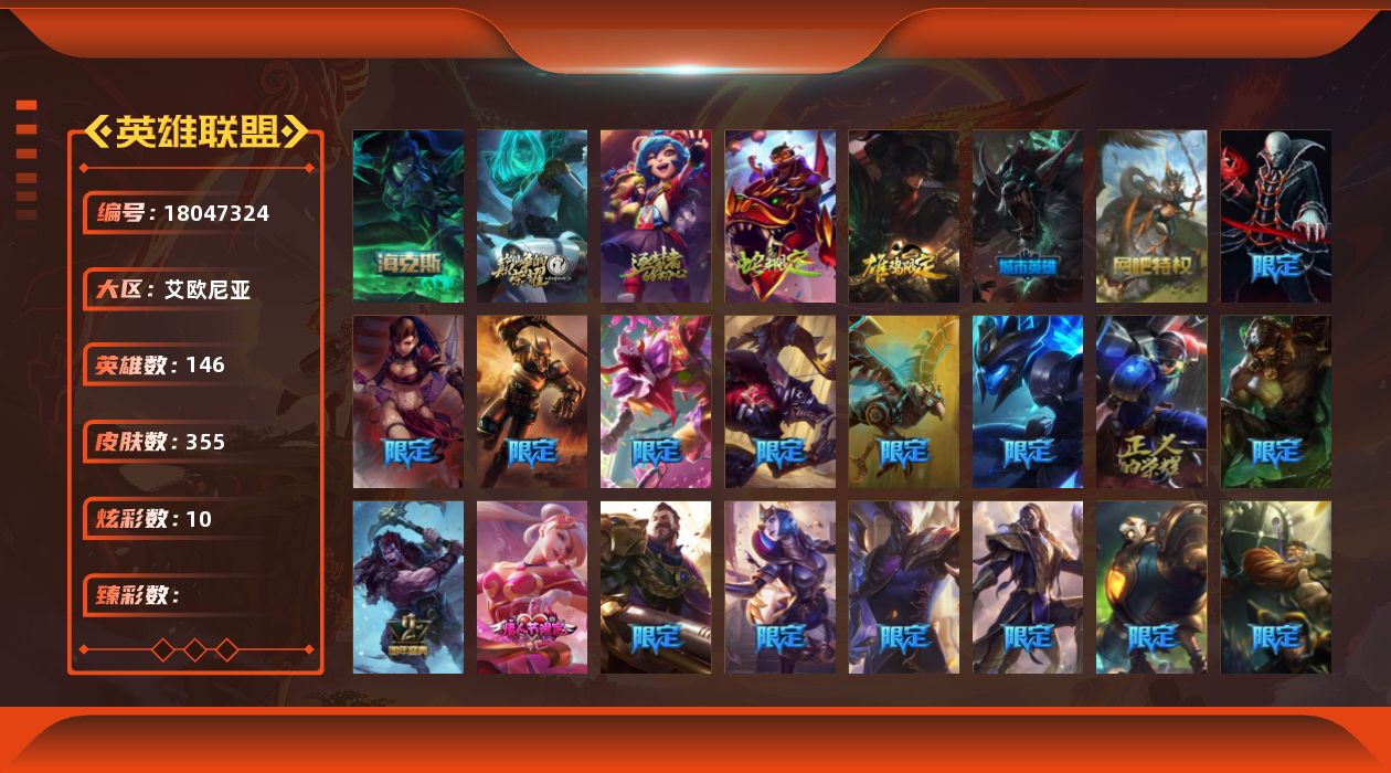 [18047324]【店主推荐捡漏号】未定级段位-146英雄-355皮肤-10炫彩-0终极-3神话-51限定-28传说-91史诗