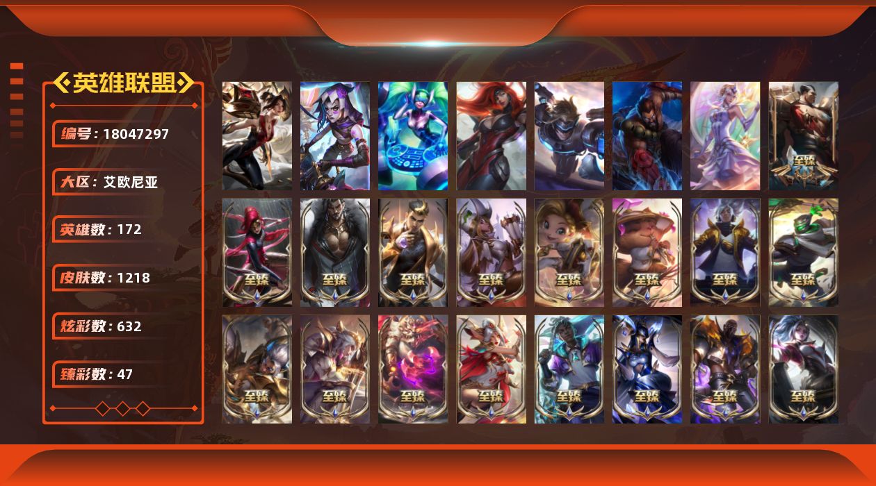 [18047297]【店主推荐捡漏号】白银段位-172英雄-1218皮肤-632炫彩-5终极-45神话-211限定-110传说-213史诗
