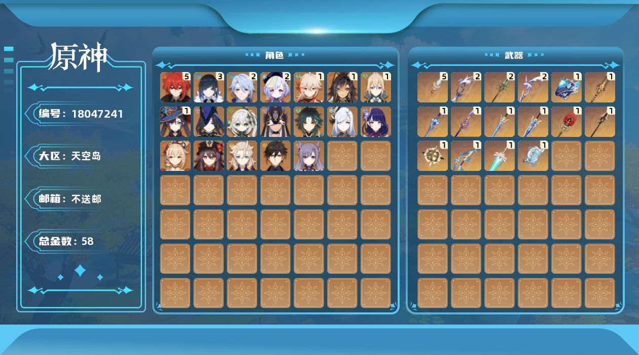 [18047241]60级/58黄/男主/19个五星角色/16个五星武器