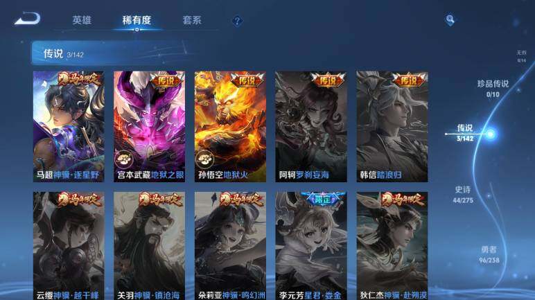 【传说皮肤】:马超神骥逐星野,宫本武藏地狱之眼,孙悟空地狱火