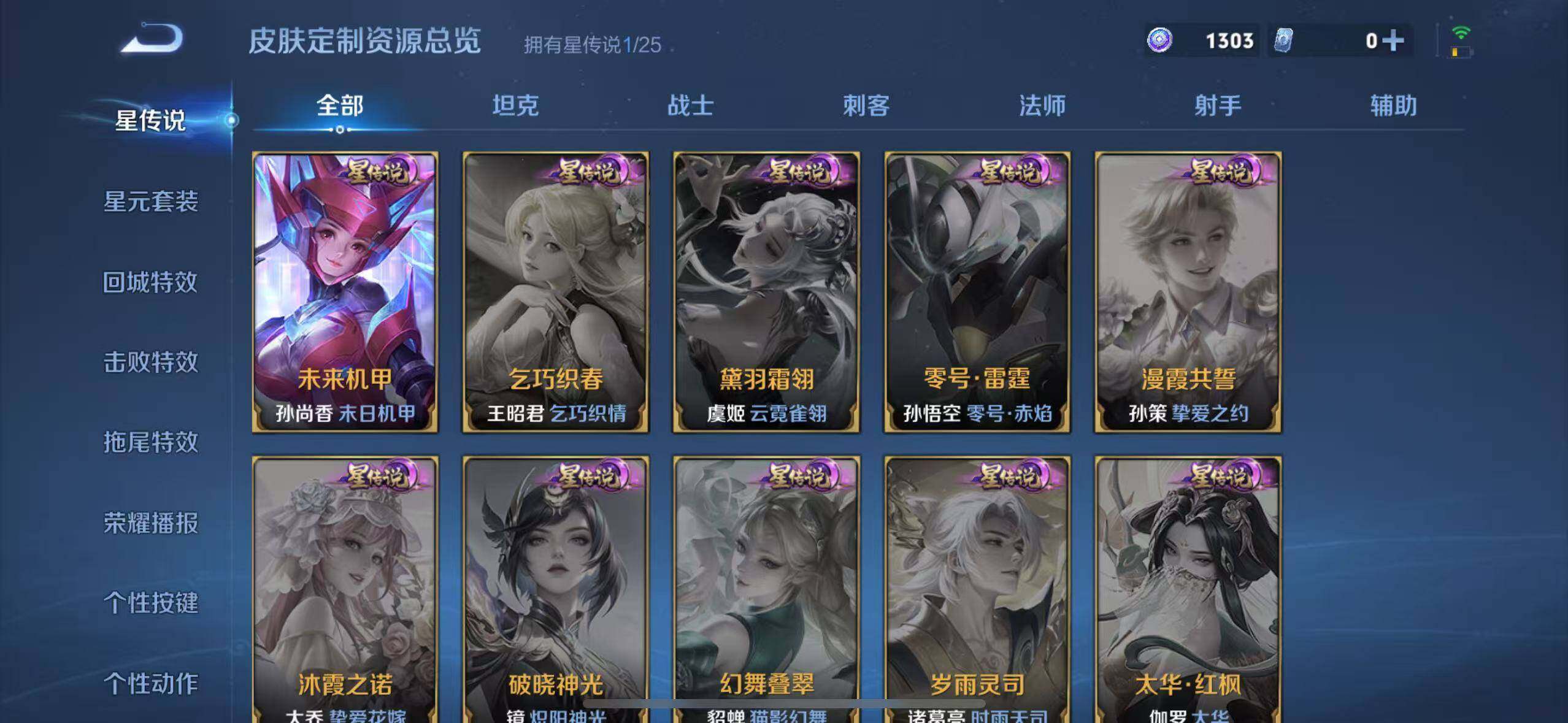 【传说皮肤】:马可波罗深海之息,鲁班七号寅虎瑞焰,西施游龙清影,李元芳飞鸢探春,公孙离祈雪灵祝,诸葛亮时雨天司,曜云鹰飞将,伽罗太华,虞姬云霓雀翎,孙尚香末日机甲,狄仁杰超时空战士