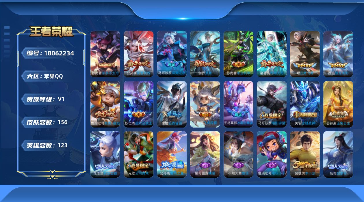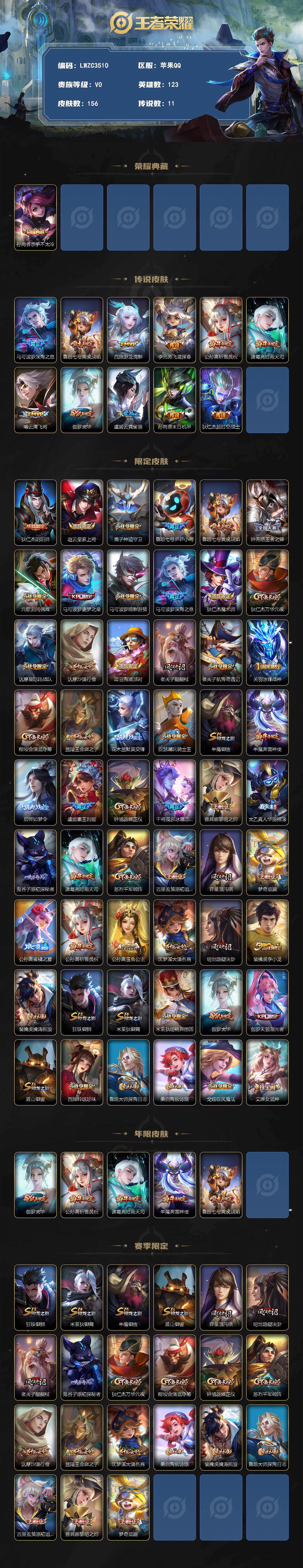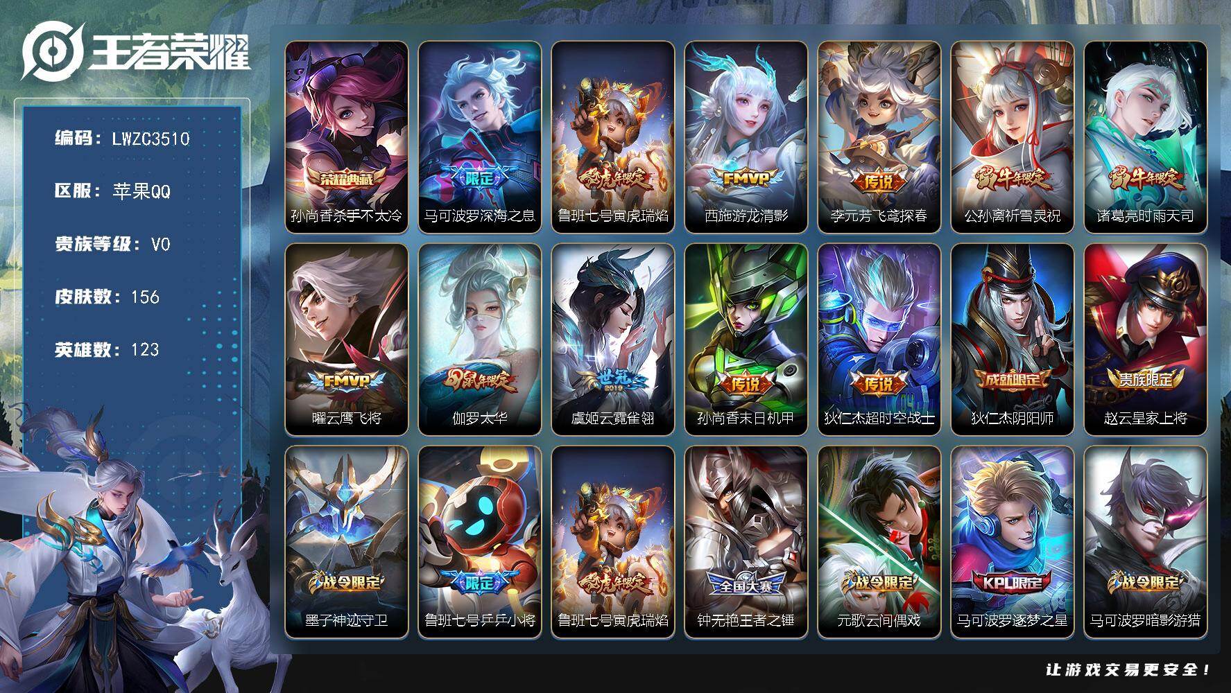 [18062234]苹果Q-V0-秩序白银III段位-123英雄-156皮肤-1典藏皮肤-11传说-47史诗