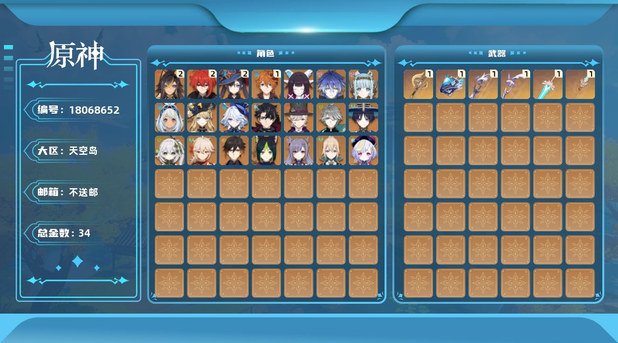 [18068652]58级/34黄/男主/21个五星角色/6个五星武器