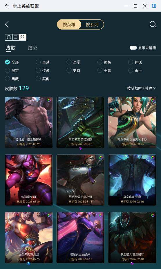 黄金段位-128英雄-39皮肤-18炫彩-0终极-0神话-8限定-4传说-4史诗