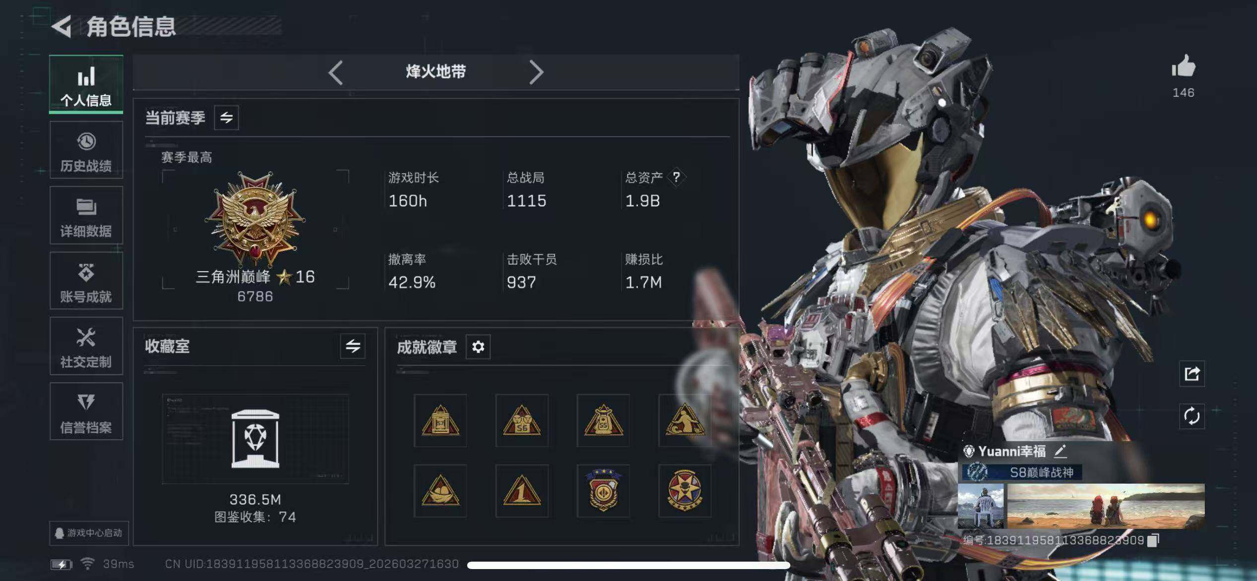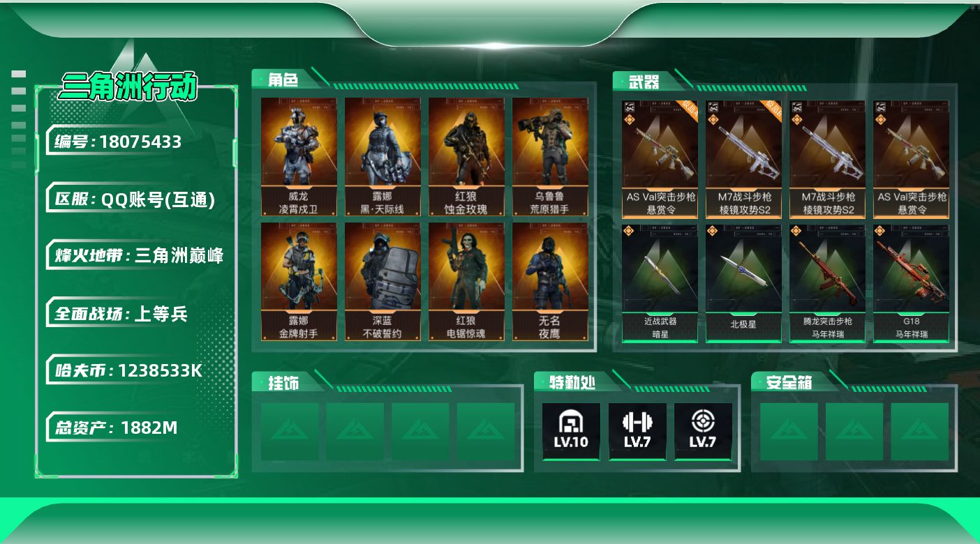 [18075433]【特价出售/店主推荐】1882m总资产-1238533k哈夫币-60烽火等级-三角洲巅峰-42战场等级-上等兵