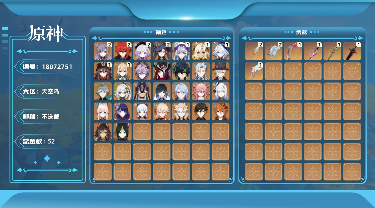 [18072751]60级/52黄/女主/30个五星角色/7个五星武器