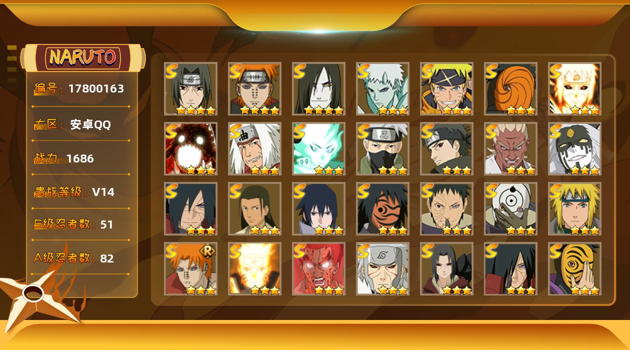 [17800163]51S级忍者数-82A级忍者数 5万3金币,56高招券,忍法帖已买。连体王者贵9,2典藏5无双3珍品24传说,320皮肤