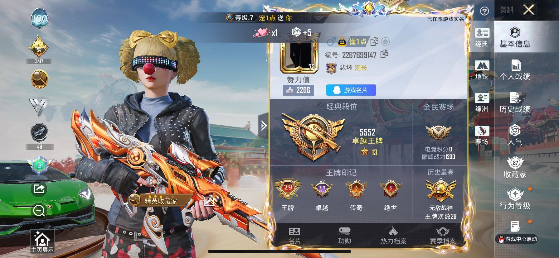 - [16181160]地铁满天赋【店主推荐捡漏号!可直接换绑】安卓 手Q-1神装-3粉装-5特效枪-3载具-4粉色飞行器-58469热力值-14王牌印记-131套装-178枪皮【红色神装等级】:圣域龙灵-瑞拉(二级)【红色角色神装】:圣域龙灵-瑞拉【热门品类】:套装-龟仙人【粉色载具】:宝马X6 M(曼岛绿),迈凯伦塞纳(冷萃蓝),黑曜夜骑【粉色套装】:粉装-幻影飞狐,角色-仙女座 瞬,粉装-幻彩电音【粉色枪皮等级】:AUG-暖羊咩咩(五级),AUG-圣斗士星矢(七级),Kar98K-巳巳如意(五级),Kar98K-圣域龙灵(三级),DP-28-豹影疾电(五级)【粉色枪皮】:AUG-暖羊咩咩,AUG-圣斗士星矢,Kar98K-巳巳如意,Kar98K-圣域龙灵,DP-28-豹影疾电【粉色飞行器】:彩虹独角兽飞行器,圣域金龙飞行器,雀灵庇佑飞行器