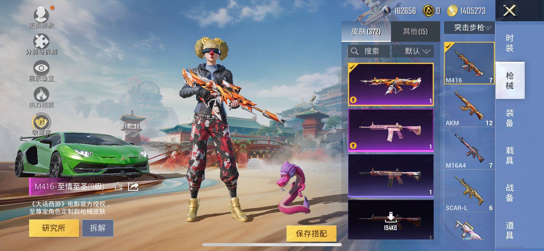 AKM-盖世英雄,M416-心之恋语,M416-至情至圣,AUG-超新星,M762-激战未来,P90-能量风暴,P90-沙丘之主,Kar98K-巳巳如意,MG3-梦幻舞会,破片手榴弹-粉粉猫爪